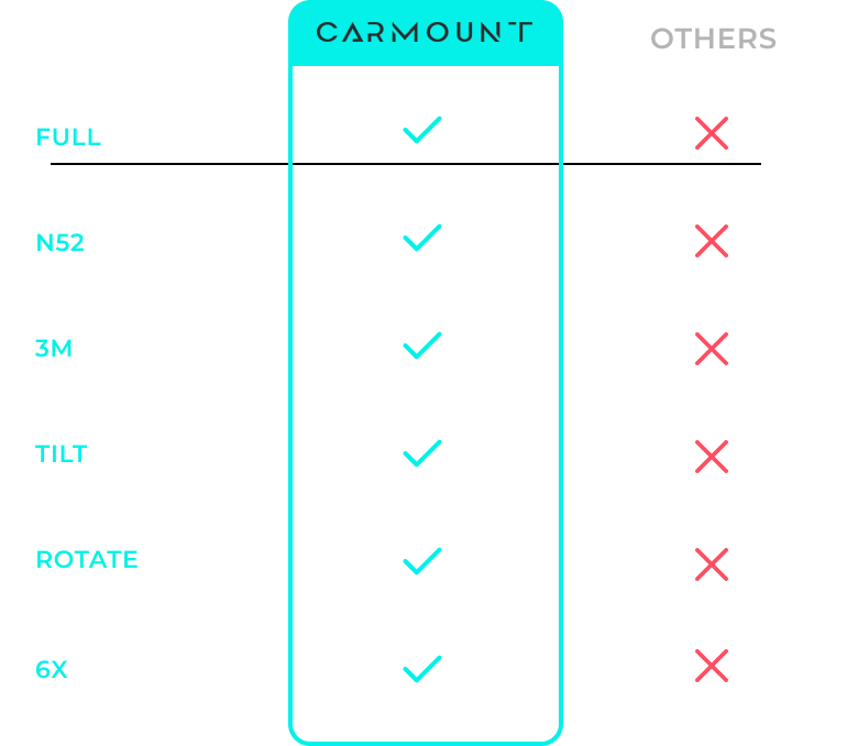Our magnet system is 3x stronger, which is enough to ensure that the phone stays firmly put.